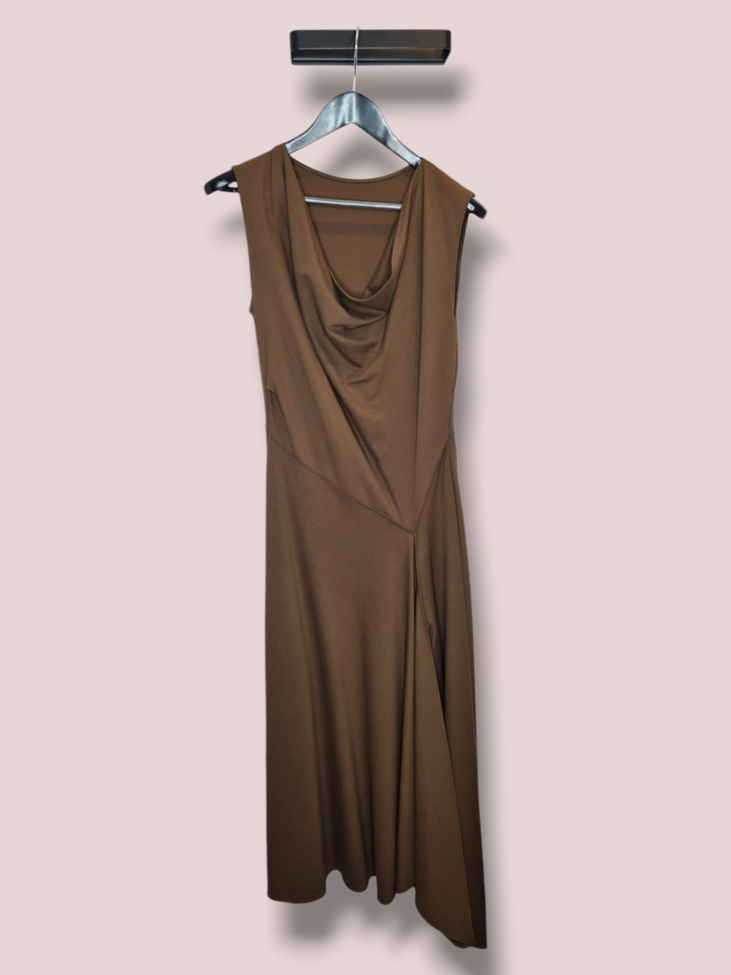 Abito asimmetrico senza maniche con collo ad anello drappeggiato e lunghezza alle caviglie. Vestibilità regolare. Composizione viscosa, poliammide, elastane