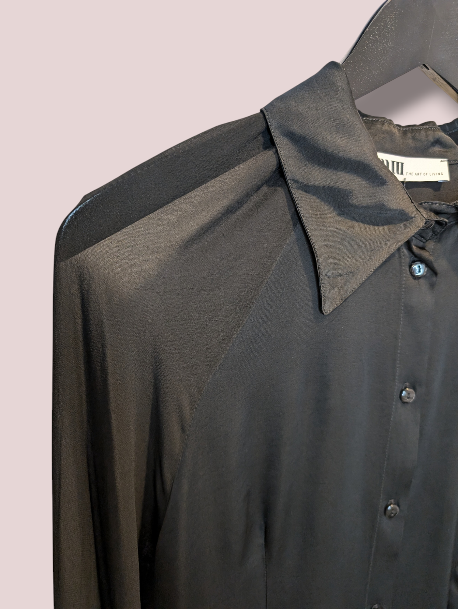 Camicia in fluido di viscosa e maniche in georgette trasparenti. Vestibilità slim fit Composizione 100% viscosa