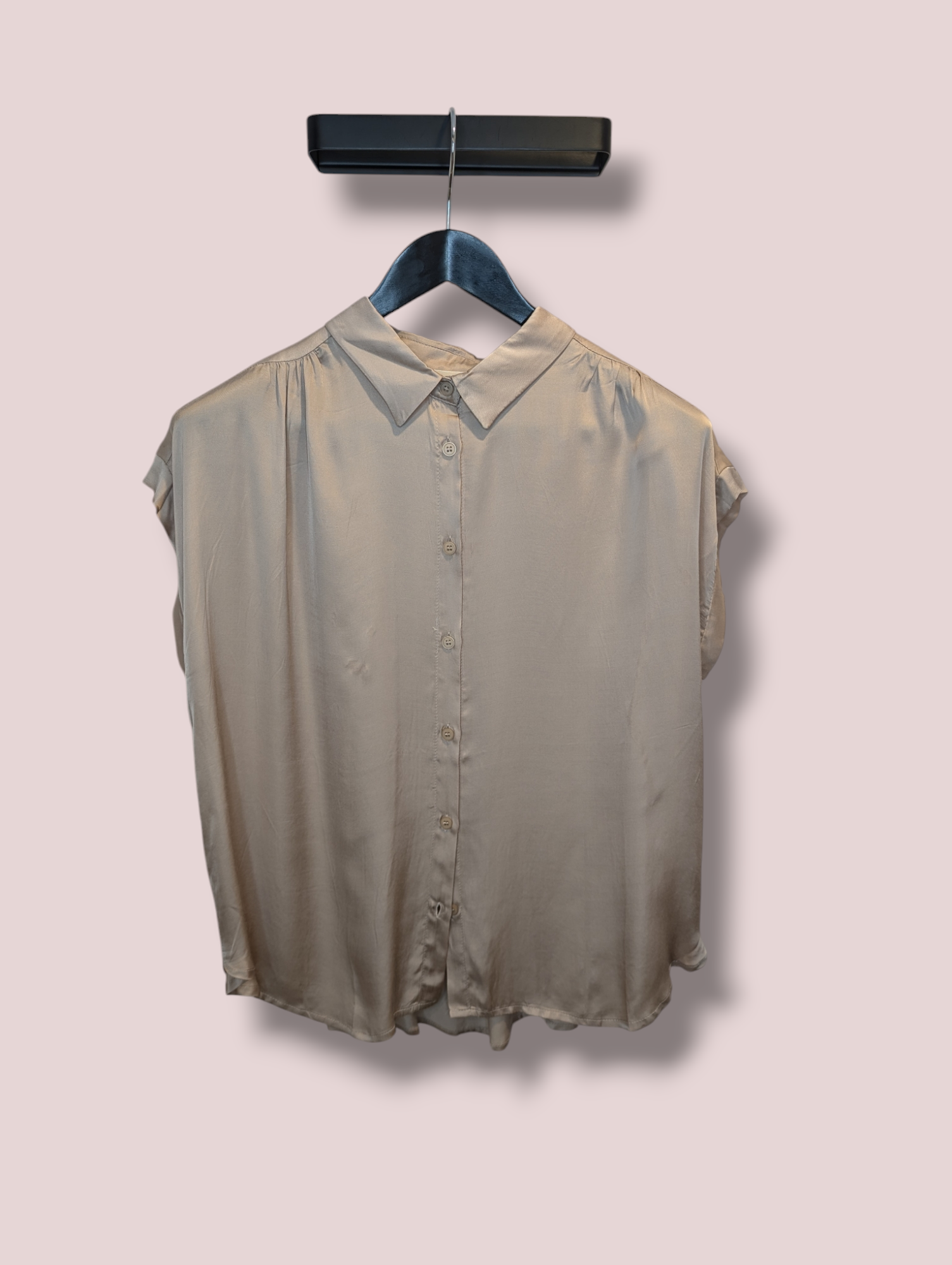 Camicia con manica ad aletta in fluido di viscosa. vestibilità regolare. Colore beige. Composizione 100% viscosa. Scala taglie francese