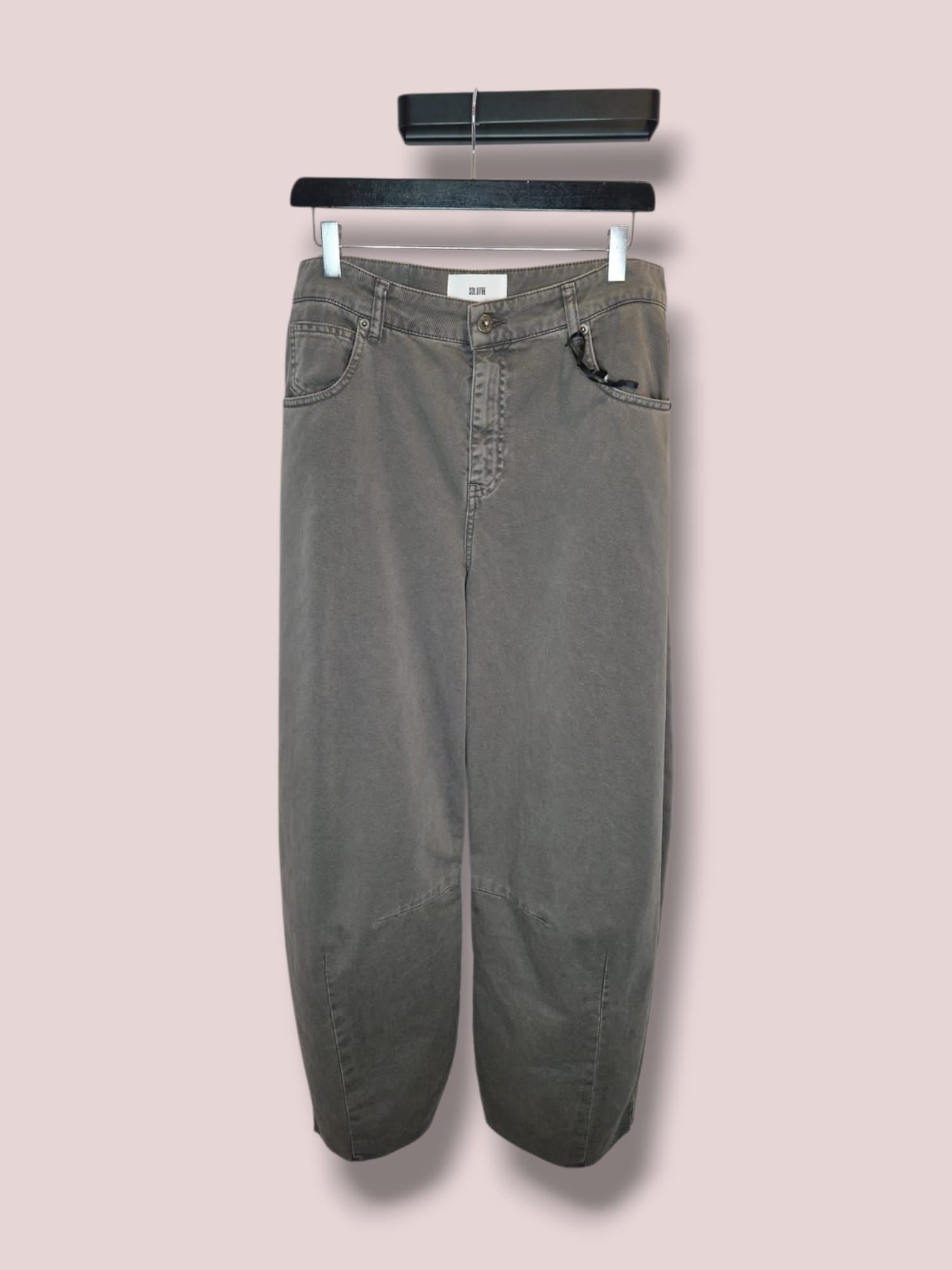 Denim con lavaggio grigio pietra modello " balloon". Vestibilità comoda. Composizione cotone 100%