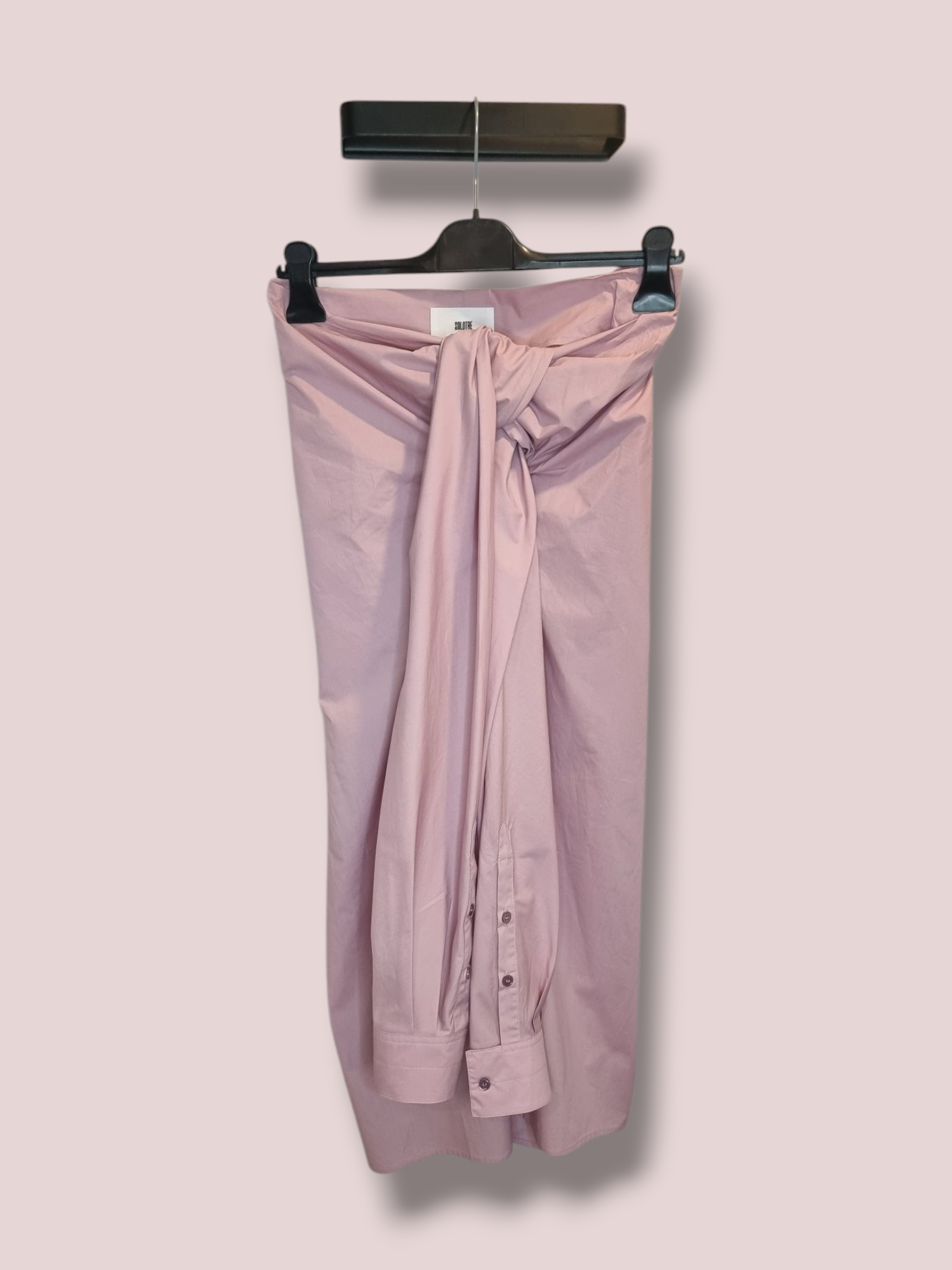 Gonna pareo con chiusura sul davanti con nodo. Lunghezza midi e composizione in popeline di cotone 100%