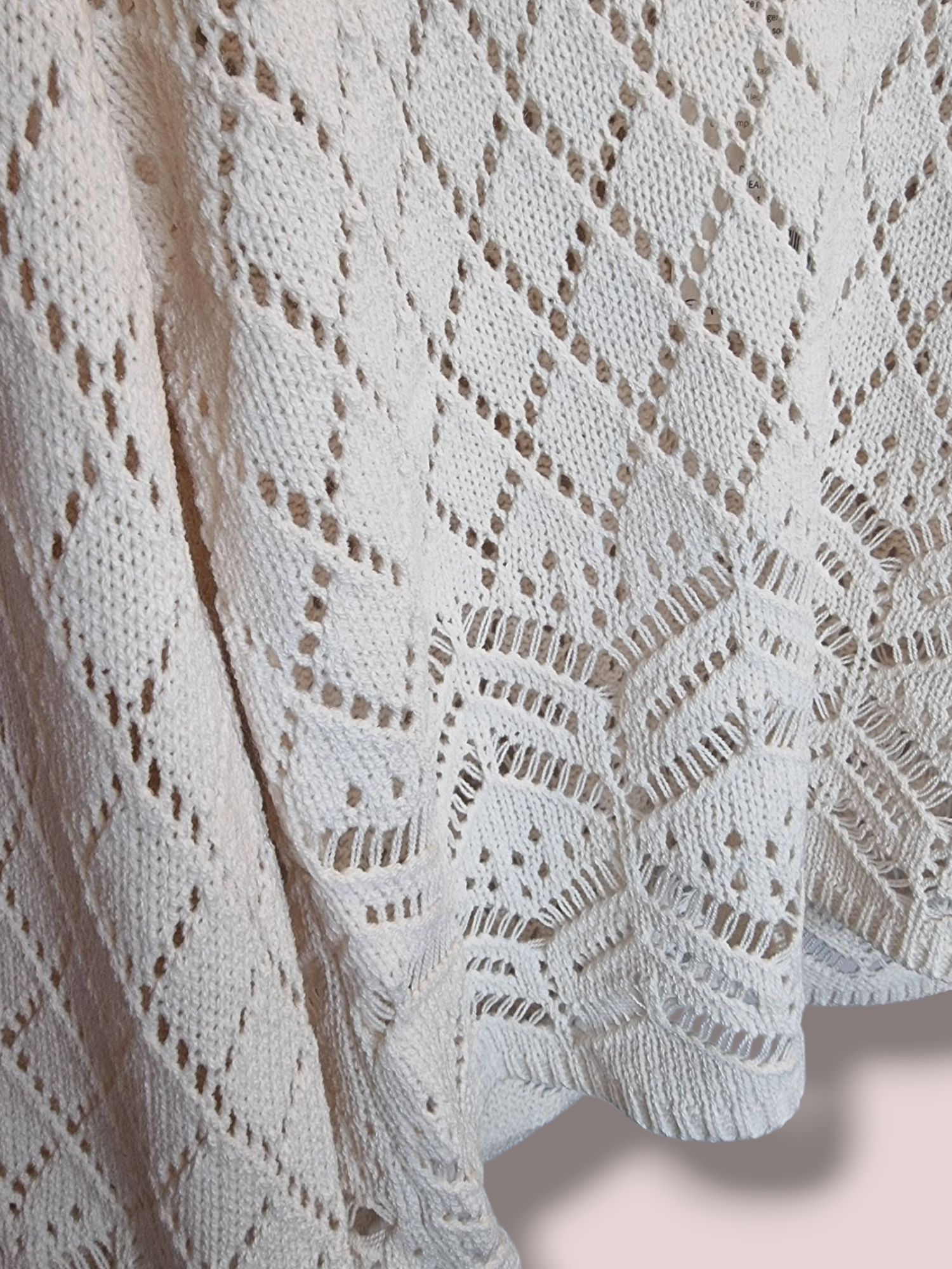 Maglia con maniche lunghe svasate e lavorazione con scollo a V. Composizione acrilico