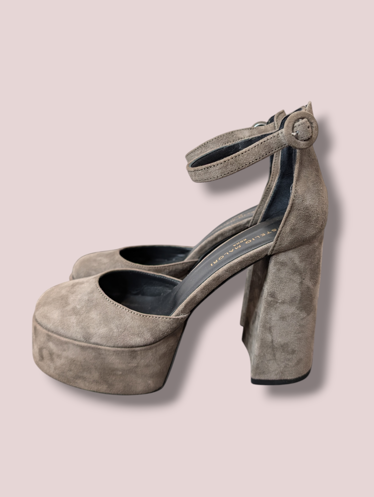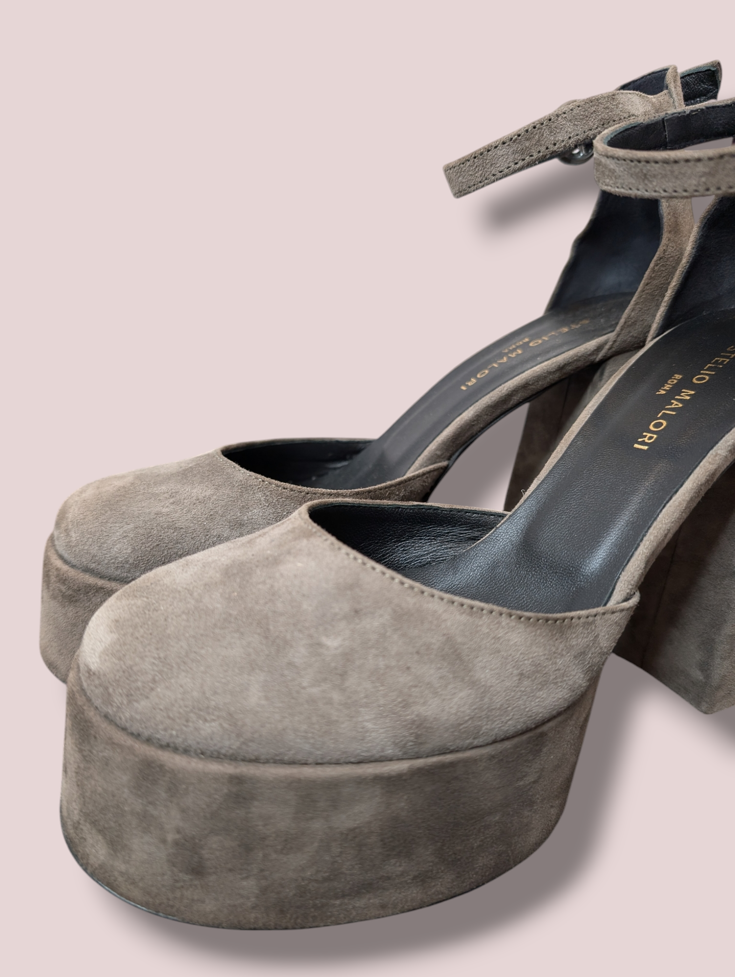 Mary Jane by Stelio Malori con punta tonda in pelle scamosciata, plateau e tacco cm 14. Composizione pelle