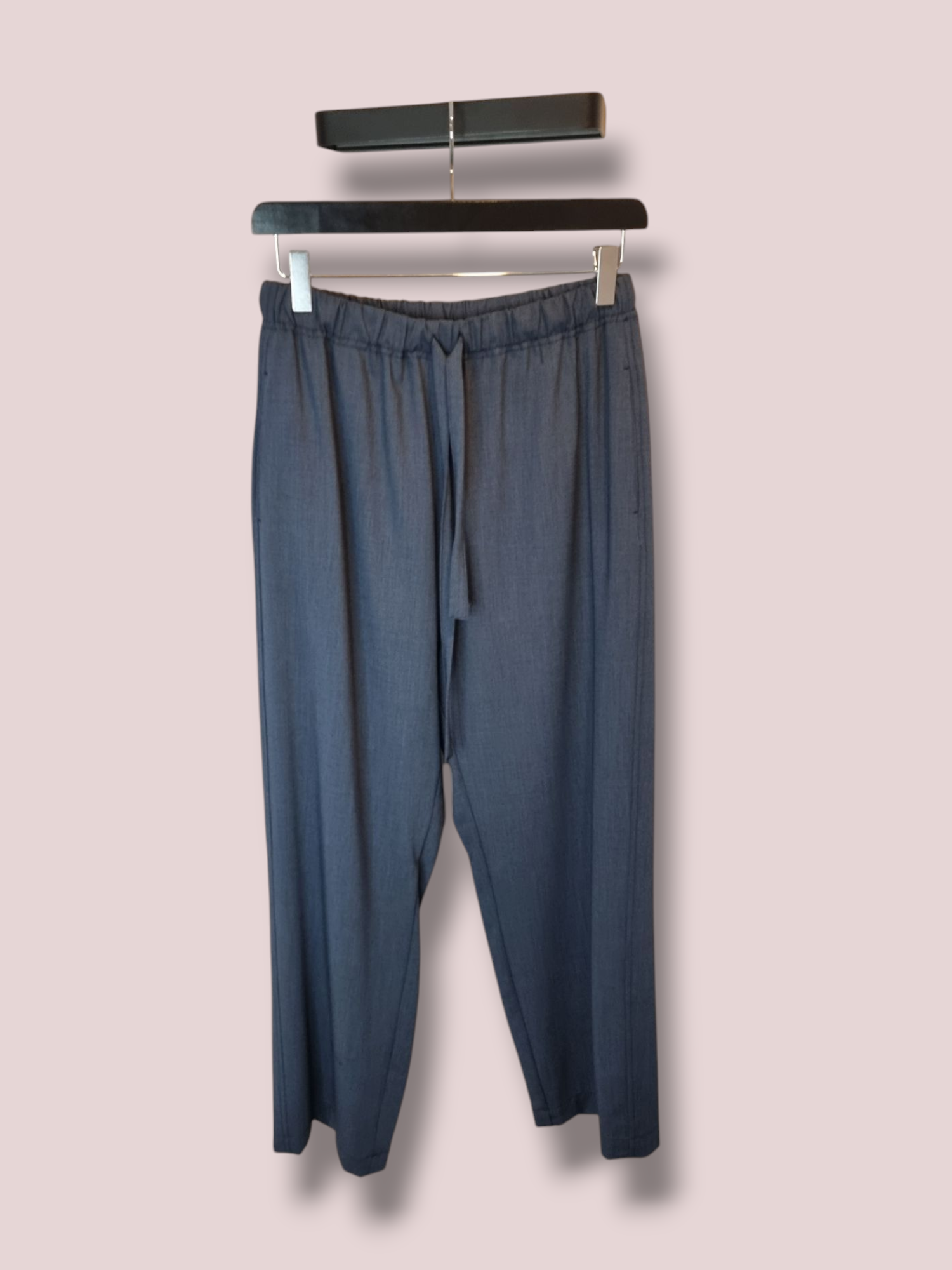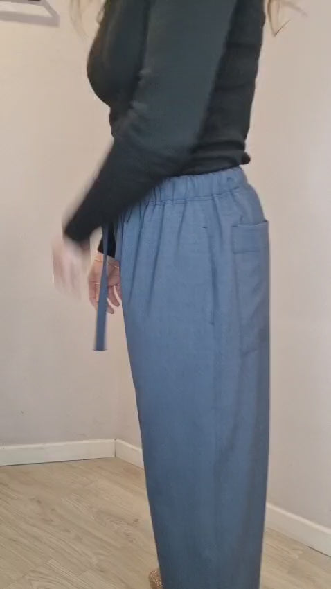 Pantaloni con elastico e coulisse in vita in tessuto fluido e tasche nella parte posteriore. Vestibilità regolare. Composizione viscosa e poliestere