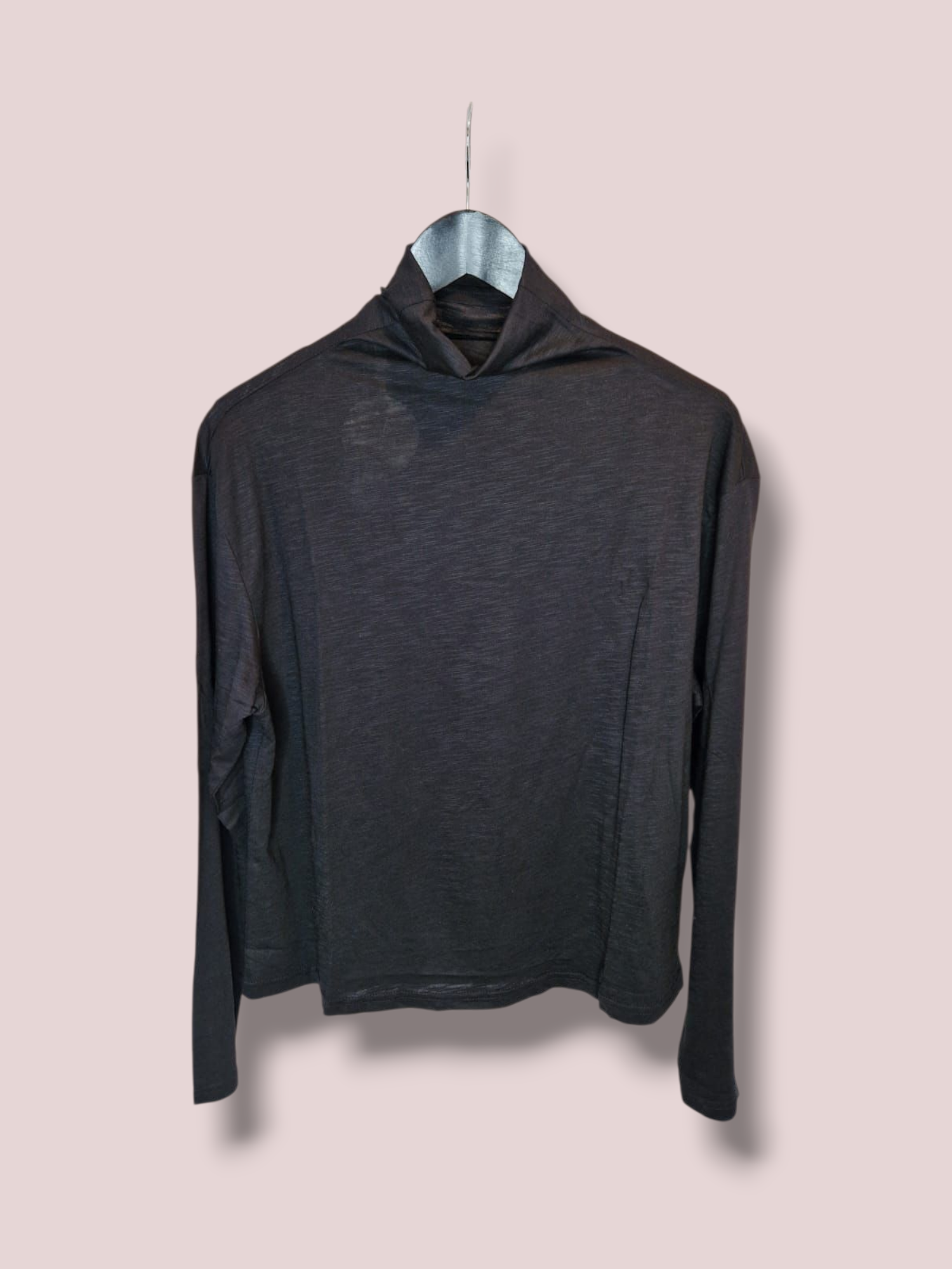T-shirt mélange con collo a cratere e maniche lunghe. Vestibilità ampia. Composizione cotone e modal