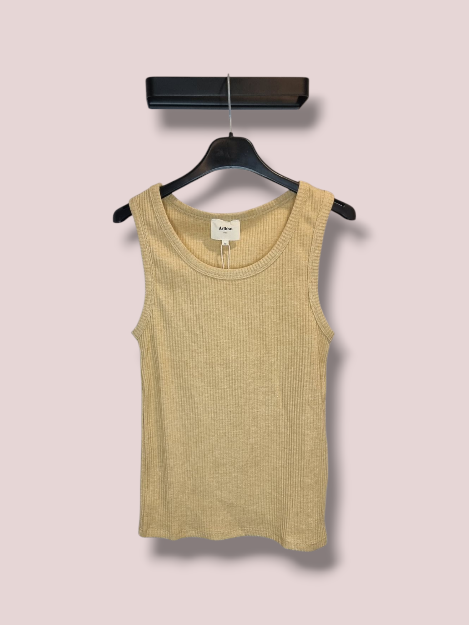 Top in costina di viscosa lurex con spalla larga. Composizione viscosa poliestere e filo lurex