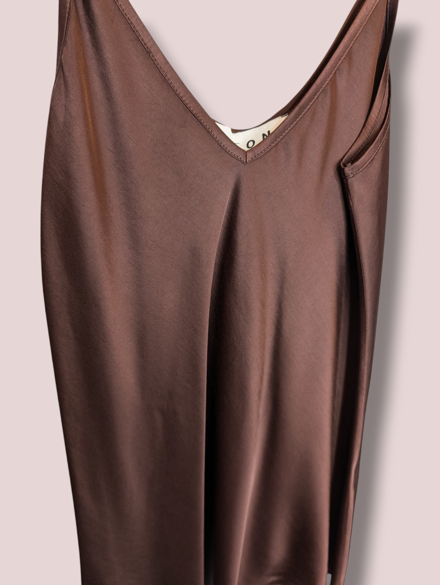 Top con bretelle e scollo a V in viscosa effetto seta. Composizione viscosa 100%